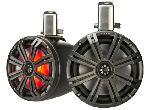 Kicker Marine 51KMTCXL65W Horn Loaded Marine Tower Speaker Cans in White finish – premium marine-grade speaker enclosures designed for wakeboard towers and roll bars, delivering powerful, directed sound on the water
